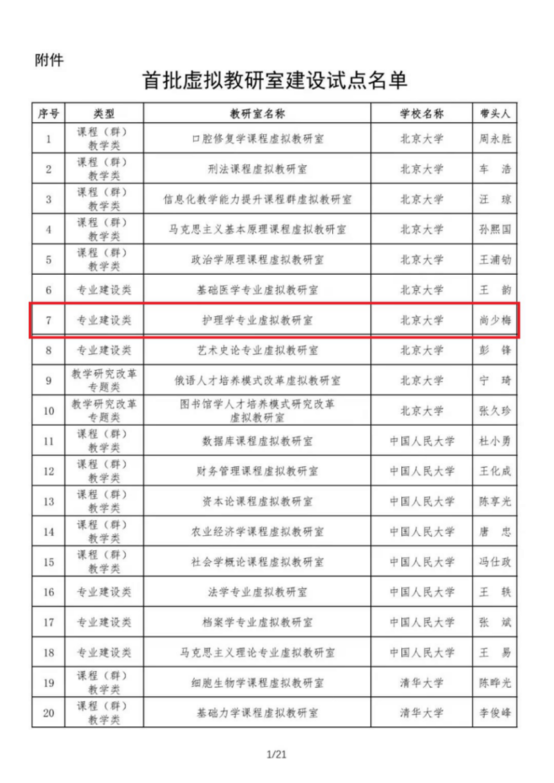 护理虚拟教研室入选教育部首批虚拟教研室建设试点名单
