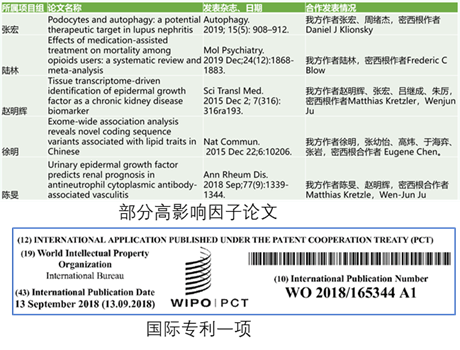 国际联合研究中心资助的项目至今已经在专业期刊发表了100余篇文章,包括众多领先的学术期刊《细胞》《自然-通讯》《自然-遗传学》《循环》《科学-转化医学》;联合申请美国专利1项。