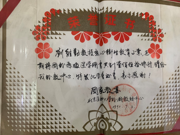 1990年药学院刘维勤教授向图书馆捐赠图书