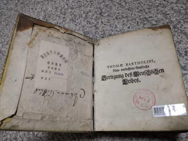 陈列在图书馆内的不同时期的医学教材