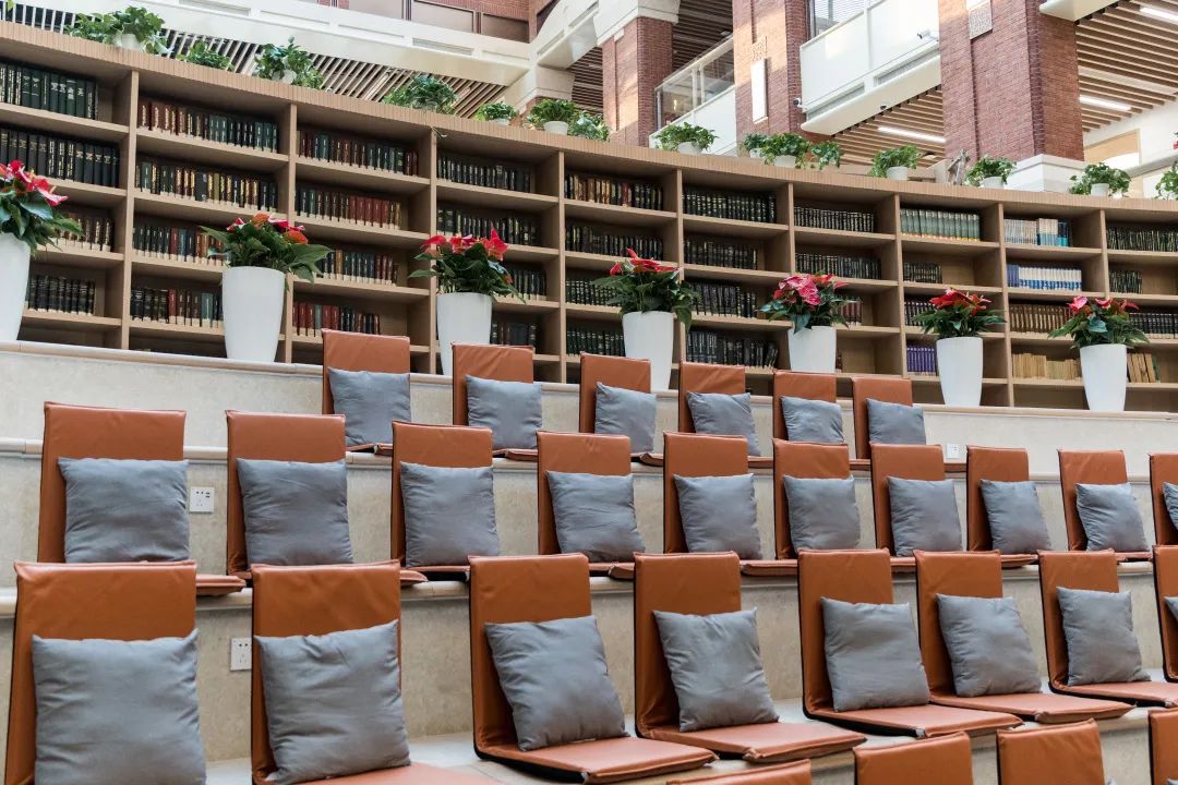 为满足读者多样化的阅读需求,馆内在一层至四层设有期刊、中文图书、外文图书、毕业论文等多处阅览区及楼层连廊。