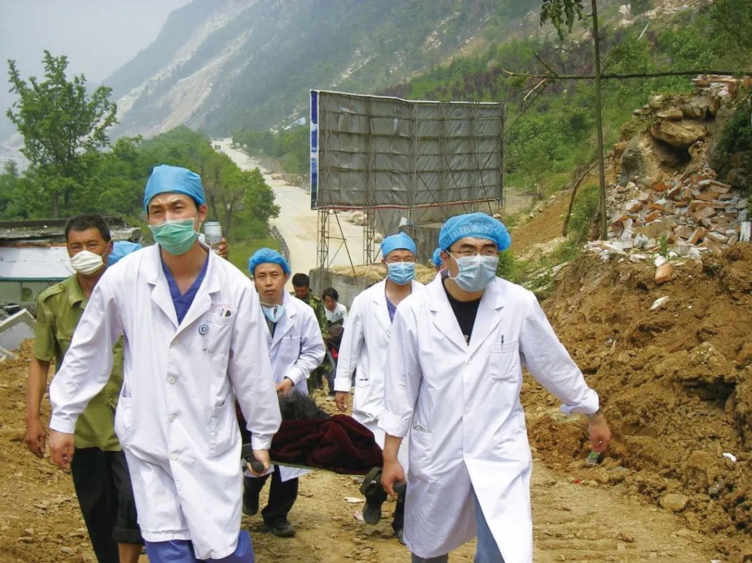 2008年5月,北医青年医务人员奔赴汶川地震灾区救治群众