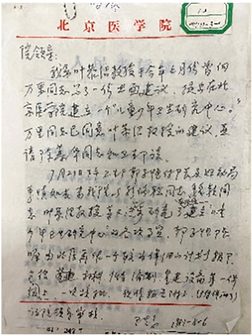 1981年叶恭绍向万里写信,提出建立儿童青少年卫生中心