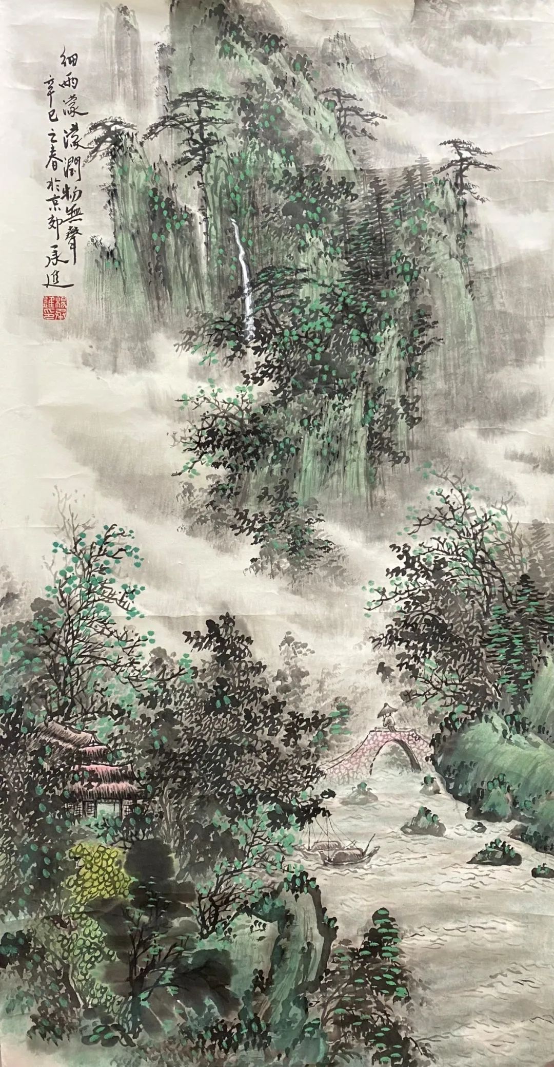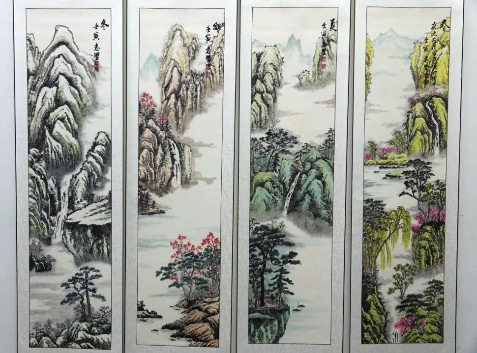 这幅《早春》图以传统的工笔重彩手法表现了初春杏梅花在雪中绽放,树干和绿竹上落满积雪。一对美丽的相思雀在枝头鸣唱,好似祈盼春天的到来和人间的一切美好如愿。