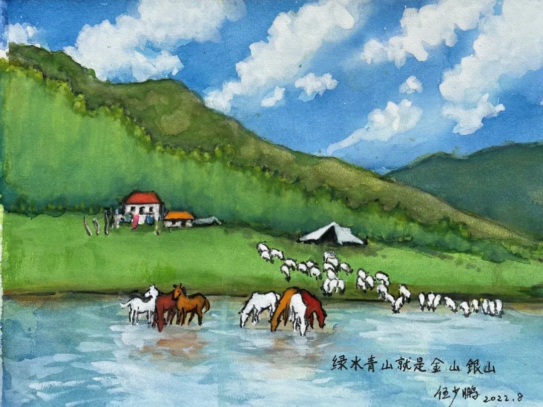 每当发生重大疫情、灾情威胁到人民健康时,都有北大医院人的身影。每当我们奔赴前线,医院领导和同事们都会在第二住院部东广场为我们送行,依依惜别。所以,以此为主题创作。我翻阅诸多素材,在构图、用笔、着色等方面获得了许多灵感,最终完成此画。