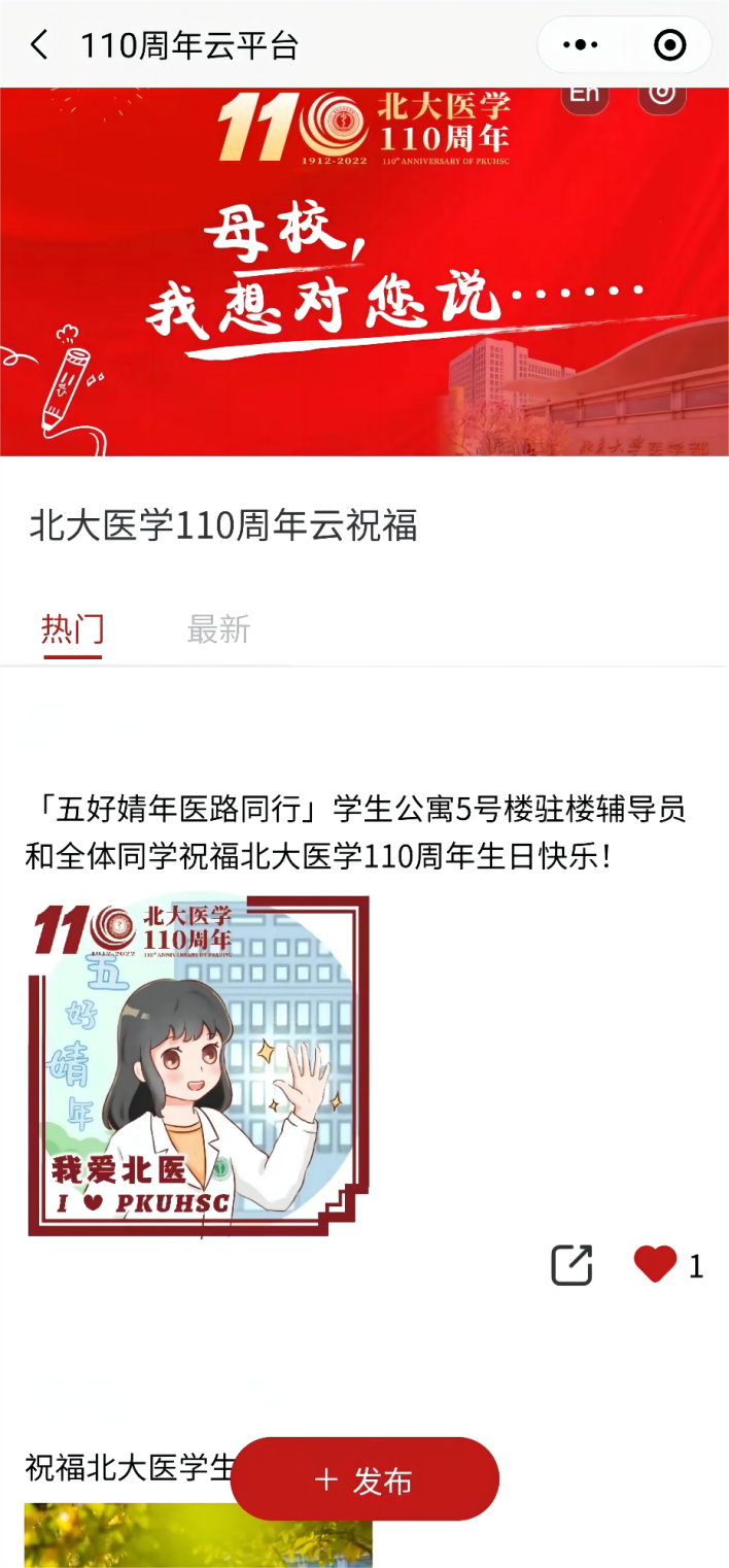 在云祝福平台写下对北医的美好祝愿