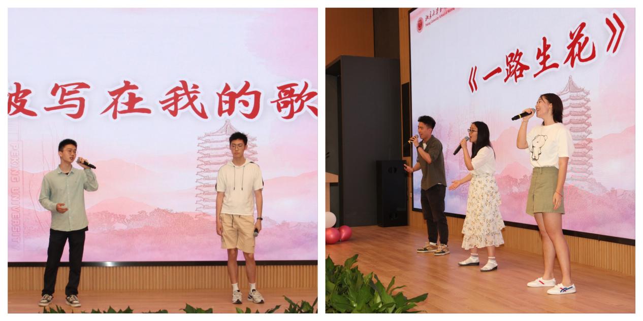 本次典礼以歌曲《你被写在我的歌里》、《一路生花》和2022届毕业生纪念视频开场。动听的音乐就像是叮咚的泉水在山间流淌,一句句的歌声,唤醒了毕业生内心中一段段珍贵的回忆,融入了他们对母校的不舍与对未来的憧憬。余音绕梁之际,现场播放了2022届毕业生的纪念视频,视频中专业班主任王艳、朱秀和柳皋隽的祝福以及承载了共同回忆的照片都唤起了在场每一位师生的情感共鸣。