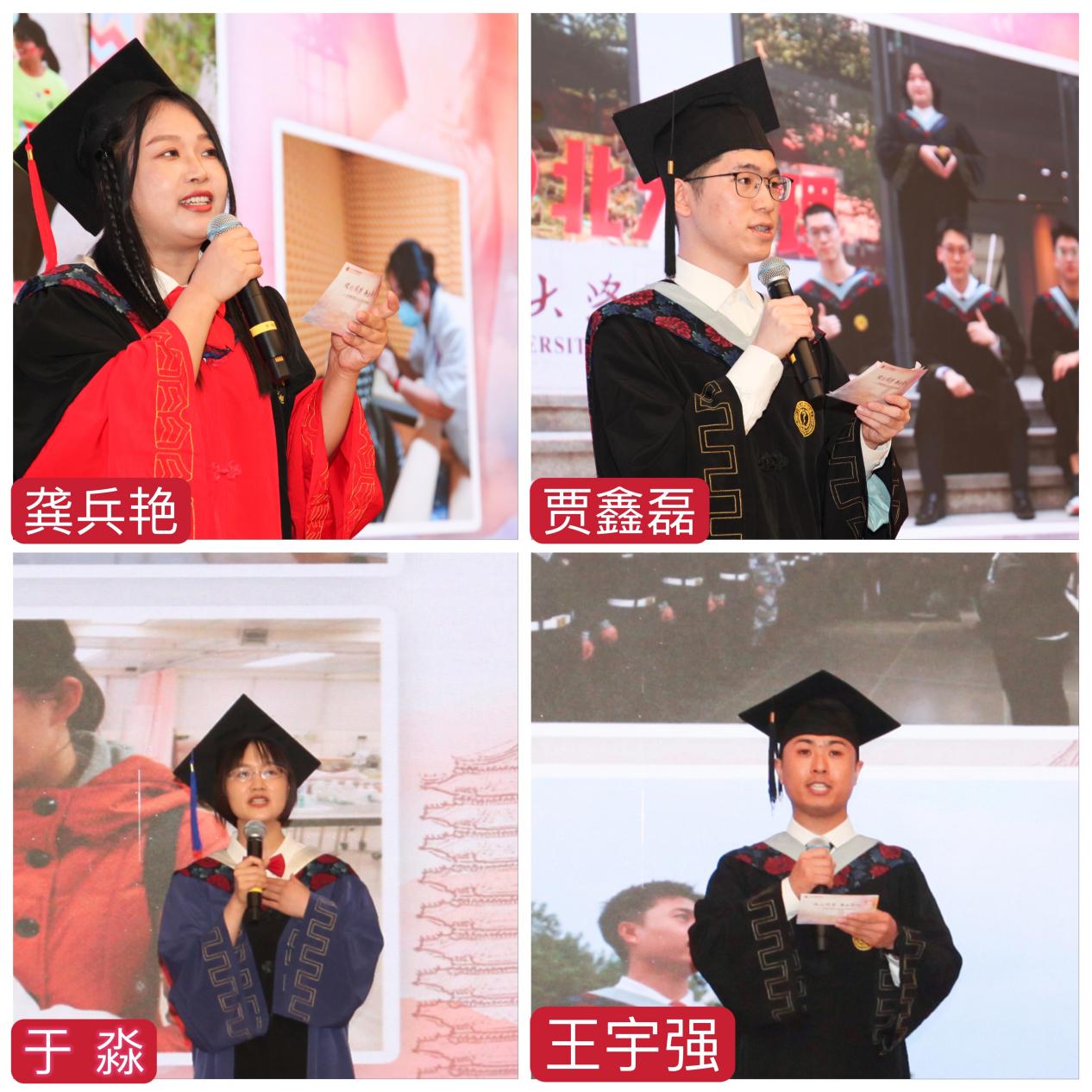 四名毕业生代表龚兵艳、贾鑫磊、于淼、王宇强讲述了他们的选择。无论未来是成为一名人民教师,还是踏上护理临床的岗位,亦或是继续科学研究,他们都会保持奋斗与热情,肩负着北大护理人的责任和使命,不辜负学院与老师的培养,把北医的厚道精神化作自己的力量,继续为健康中国事业献智、献力,为护理事业发展发光、发热。不忘初心,牢记使命;乘风破浪,直济沧海 ;披荆斩棘,勇往直前。