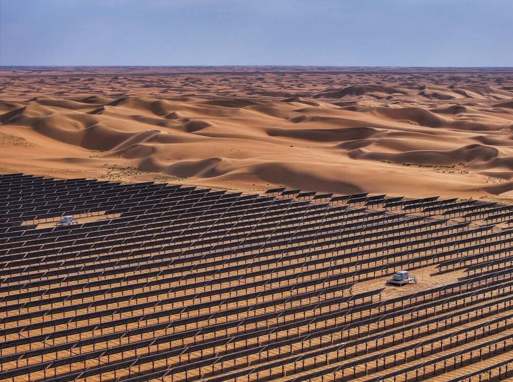 这是2025年6月5日拍摄的位于内蒙古巴彦淖尔市磴口县的乌兰布和东北部新能源基地