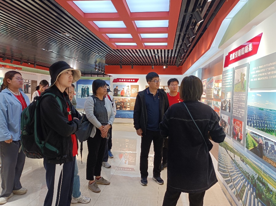 9月1日上午,实践团来到张北县小二台镇德胜村,学习其独具坝上特色的乡村振兴道路,了解乡村振兴样板、低碳绿色标杆、产业融合典范、高端研学基地的模范作用。在讲解员的带领下,师生们首先来到德胜印象馆,展览以习近平总书记走访调研的内容为主线,记录了德胜村在脱贫攻坚道路上的蝶变过程。