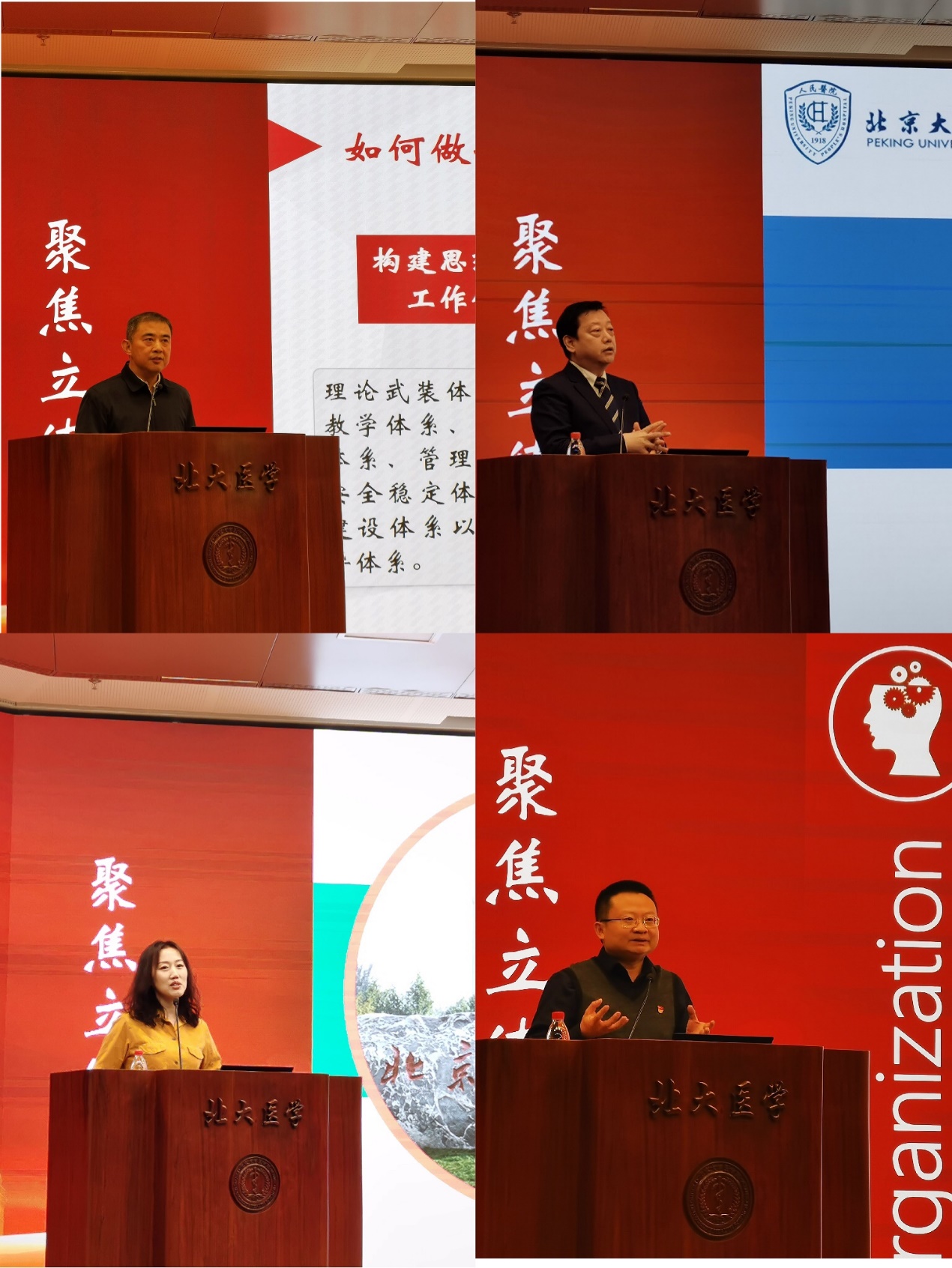 随后,人民医院党委副书记陈红松从“教书育人,科研育人,管理育人,实践育人,心理育人,文化育人,网络育人”七方面作了“落实立德树人根本任务,为祖国培养优秀医学人才”的专题讲座,强调要将立德树人工作落实到每一个环节;党委宣传部部长焦岩围绕“思想上的共识、机制上的保障、文化中的熏陶”三方面进行了“师德师风建设的几点思考”的专题讲座,提出“用好榜样示范引领、用好专业打造特色、用好契机顺势而为、用好环境营造氛围”的师德师风建设思考。新闻与传播学院党委副书记卢亮作了“从心灵陪伴到思想引领——关于‘三全育人’逻辑进路的几点思考”的专题讲座,从“三全育人”的历史渊源、逻辑起点和逻辑进路三方面进行了精彩的讲解。