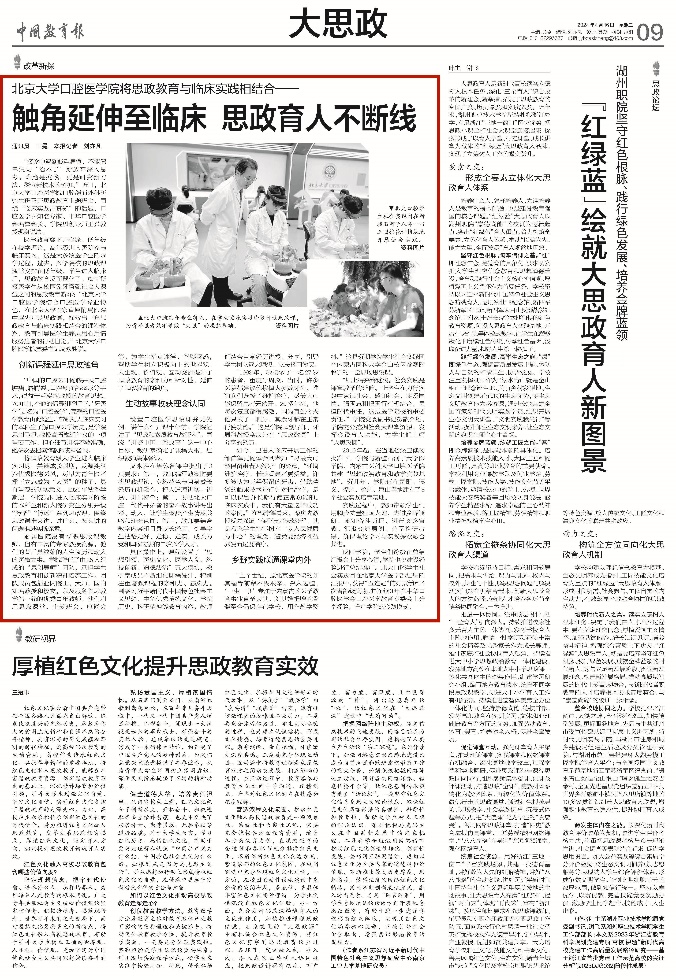 医学教育离不开实践。低年级在校学理论,高年级进入医院参与临床实习,这是大多数医学生的求学过程。过去,医学院校的思政课通常安排在低年级,学生进入临床后,思政教育反而弱化了。如何衔接医学生从校园象牙塔到社会大课堂之间的思政教育断环?“BETVLCTOR伟德在线口腔医学院结合口腔医学专业特色,在BETVLCTOR伟德在线6家直属附属医院中率先开设思政课,探索出一套思政教育与临床实践相结合的课程体系,教育引导医学生养成用心用情服务患者的行动自觉。”BETVLCTOR伟德在线口腔医学院党委书记周永胜说。