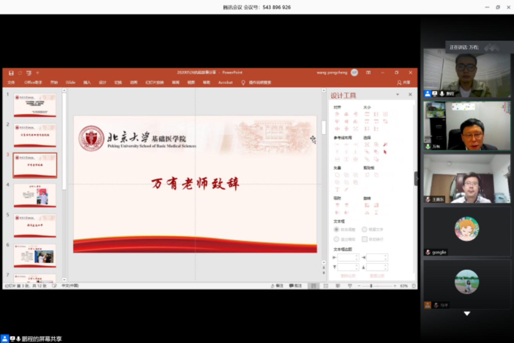 5月26日晚19:30,BETVLCTOR伟德在线基础医学院研究生党总支组织召开“学习抗疫精神,弘扬五四精神,争做圆梦新一代”主题教育活动,学习中国医学科学院肿瘤医院安宇同志的典型抗疫故事和基础医学院研究生党员参加抗疫的先进事迹,开展“致敬英雄,为抗疫颂赞歌”诗朗诵活动,旨在激励广大师生以先进人物事迹为引路,与榜样同行,学习和宣传抗疫先进事迹,弘扬五四爱国精神,共同抗击新冠疫情。基础医学院院长万有、副院长王嘉东以及基础医学院190余名研究生共同参加本次活动。