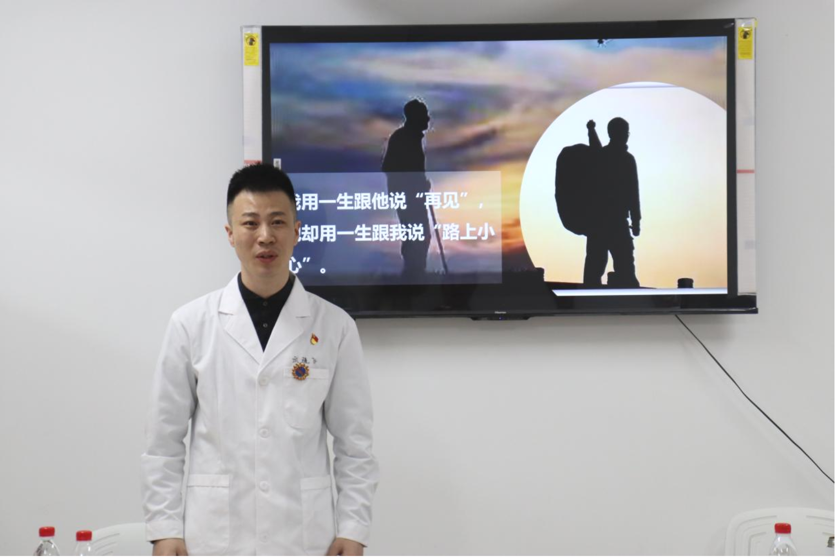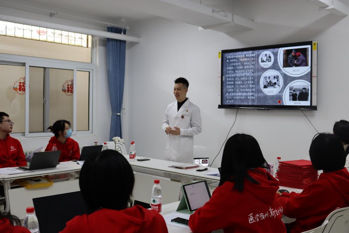 首先,武骁飞老师作为卫生健康行业的宣讲员代表,为医预新生宣讲团的成员们做了题为“爷爷给我的梦想”的宣讲。武老师身穿奶奶亲手为自己绣上名字的白大衣,用最朴实的语言、最真挚的情感,讲述了传承爷爷梦想的感人故事,为医学青年带来了一堂生动的思政课。作为中国第一代赤脚医生,爷爷一生朴实、善良,用自己的默默无闻一辈子守护着山村;作为新时代的医者,武骁飞老师也用自己的行动诠释着青年人的担当,并在继承爷爷梦想的道路上笃定前行。