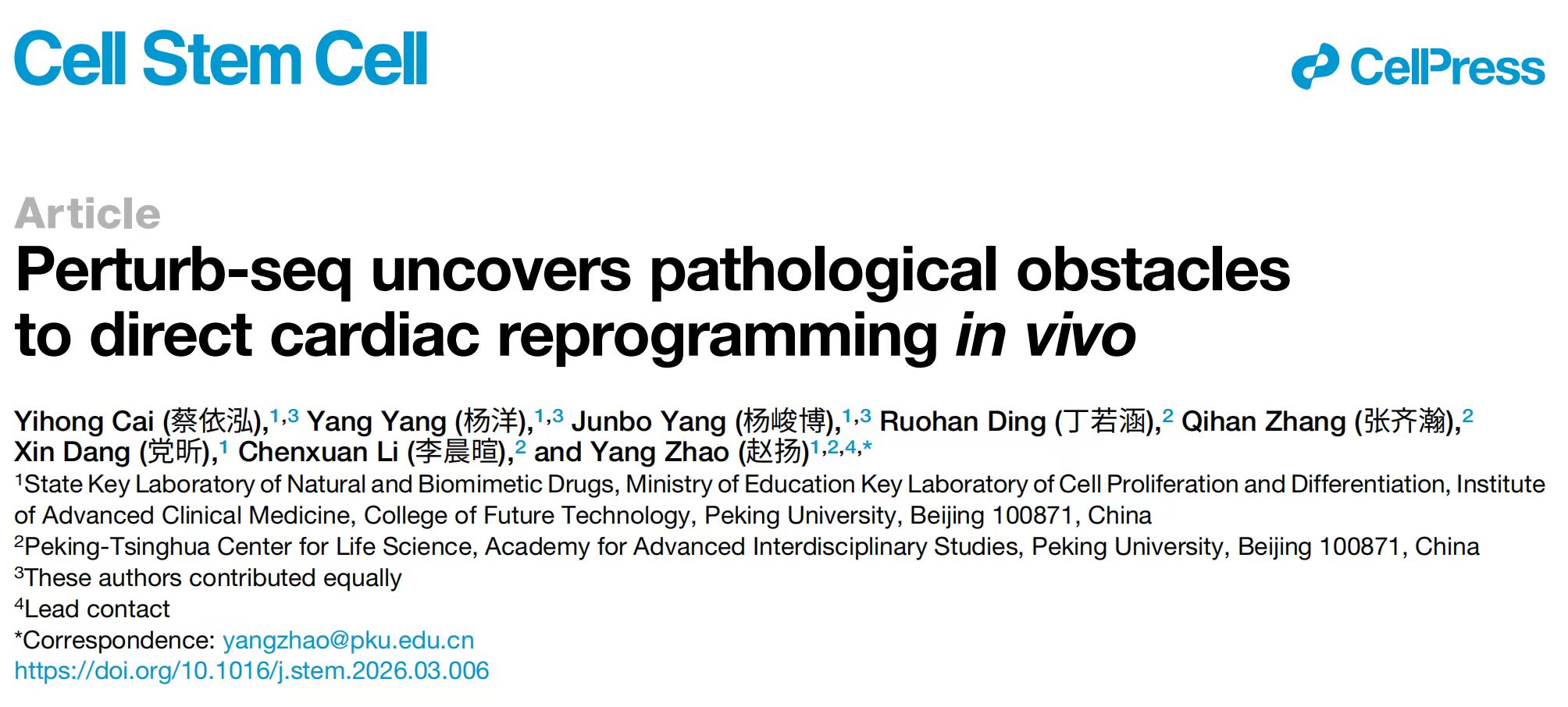 2026年3月,BETVLCTOR伟德在线赵扬研究组在干细胞和再生医学领域知名期刊Cell Stem Cell上发表了题为“Perturb-seq uncovers pathological obstacles to direct cardiac reprogramming in vivo” 的研究论文。在这项研究中,研究者建立了一套专为研究在体微环境特异调控因子而设计的在体细胞命运扰动图谱构建方案,绘制了心梗区域“在体重编程”诱导心肌再生的细胞命运转化图谱,并从140个候选因子中锁定了首要障碍因子——钙网蛋白(Calreticulin, CALR)。研究发现,心梗区域的应激响应激活CALR的表达,使其在内质网中大量驻留Ca2+,降低胞质钙浓度和钙信号活性,进而抑制了关键重编程因子MEF2C的活性。通过抑制CALR或激活钙离子信号活性能显著提升心肌重编程效率和诱导心肌细胞的质量。Calr敲低促进心梗后的在体重编程效率,促进心脏功能恢复,为心梗的再生医疗提供了理论基础和有转化前景的新靶点。