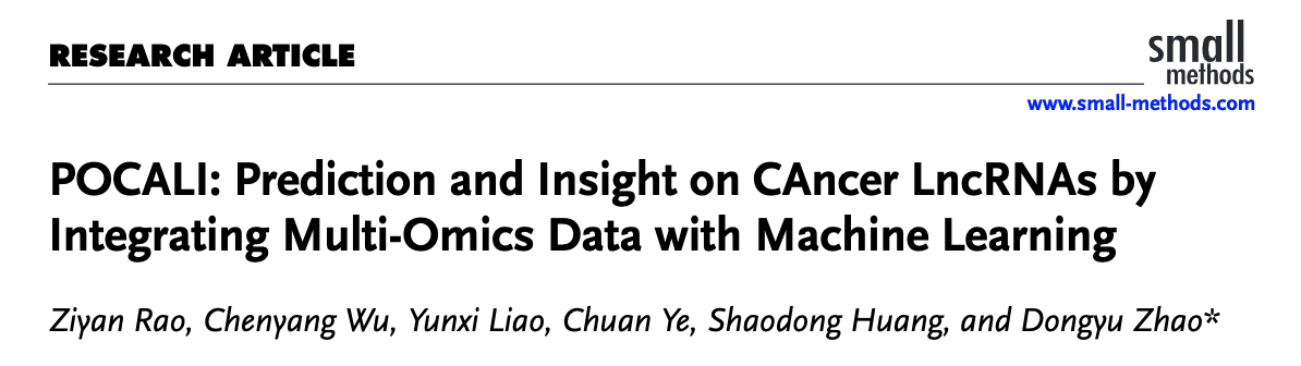 2025年5月23日,BETVLCTOR伟德在线基础医学院医学生物信息学系赵东宇研究员团队在SmallMethods期刊发表了题为“POCALI: Prediction and Insight on CAncerLncRNAs by Integrating Multi-Omics Data with Machine Learning”的研究论文。
