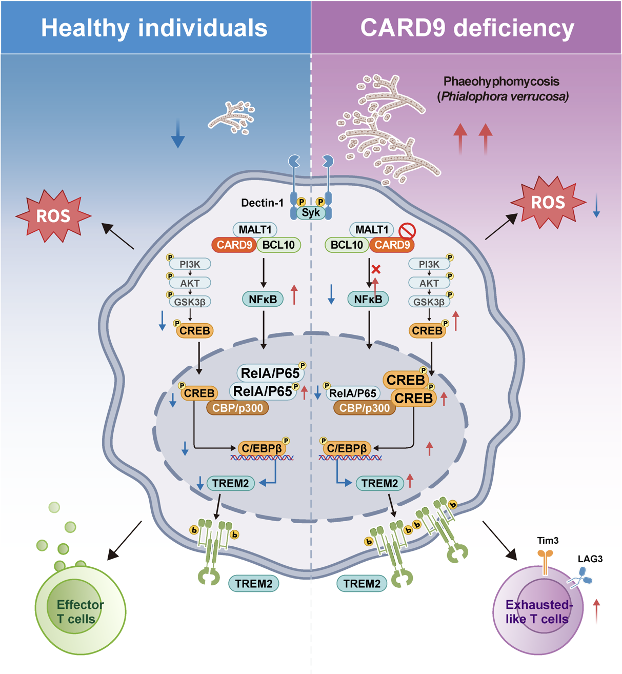 综上,本研究系统阐明了CARD9 通过调控巨噬细胞可塑性影响抗真菌免疫的关键机制,揭示了TREM2high巨噬细胞在CARD9 缺陷相关暗色真菌感染中的病理作用及其作为靶点的潜在治疗价值。该研究不仅加深了对CARD9 缺陷免疫病理机制的理解,也为未来靶向免疫调控的治疗策略提供了新的理论依据,拓展了免疫治疗在感染性疾病的应用。