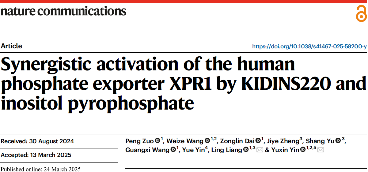 2025年3月24日,北大-清华生命科学联合中心、BETVLCTOR伟德在线基础医学院尹玉新/梁令团队在Nature Communications杂志在线发表题为“Synergistic activation of the human phosphate exporter XPR1 by KIDINS220 and inositol pyrophosphate”的研究论文。该研究通过冷冻电镜技术解析了XPR1与KIDINS220锚蛋白重复结构域的复合物在多磷酸肌醇InsP6和底物磷酸盐存在或缺失条件下的多种构象,以及单独XPR1突变体在多磷酸肌醇InsP6和底物磷酸盐存在时的结构,揭示了焦磷酸肌醇InsP8与KIDINS220蛋白协同调控XPR1磷酸盐外排功能的分子机制。