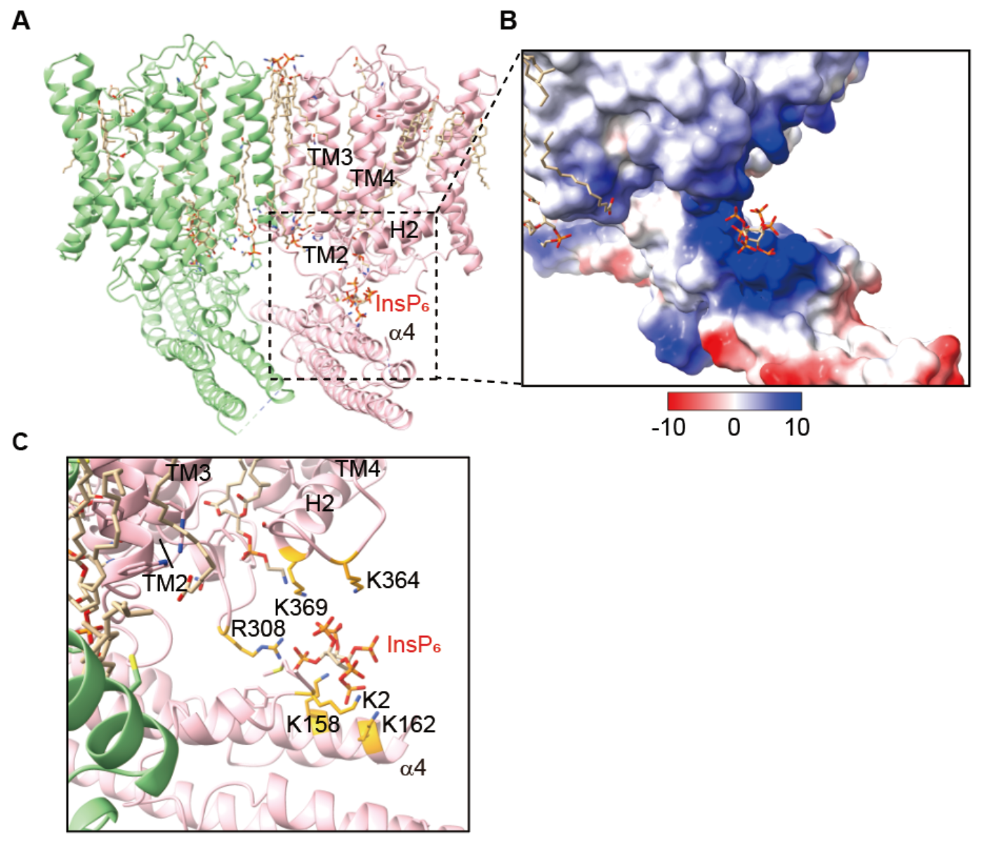 图1InsP6在SPX结构域和TMD间正电口袋结合示意图
